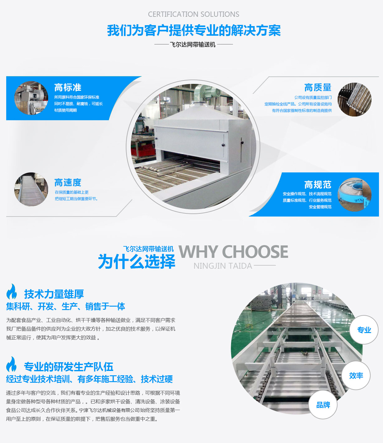 寧津飛爾達(dá)機(jī)械設(shè)備有限公司始建于1997年,位于山東省寧津縣經(jīng)濟(jì)開發(fā)區(qū)。本公司以生產(chǎn)制造金屬類網(wǎng)帶、鏈板、鏈條為主導(dǎo)產(chǎn)品。 建廠近20年,已和多家烘干設(shè)備、清洗設(shè)備、涂裝設(shè)備、食品公司、工業(yè)自動化達(dá)成長久合作伙伴關(guān)系。在保質(zhì)量、保工期的基礎(chǔ)上更把售后當(dāng)做重要環(huán)節(jié)。 本廠配件系列有:輸送網(wǎng)帶、輸送鏈板、輸送鏈條、乙型網(wǎng)帶、烘干網(wǎng)帶、清洗網(wǎng)帶、不銹鋼鏈板、沖孔鏈板、排屑鏈板。 設(shè)備系列:網(wǎng)帶輸送機(jī)、鏈板輸送機(jī)、烘干輸送機(jī)、清洗輸送機(jī)、轉(zhuǎn)彎輸送機(jī)。